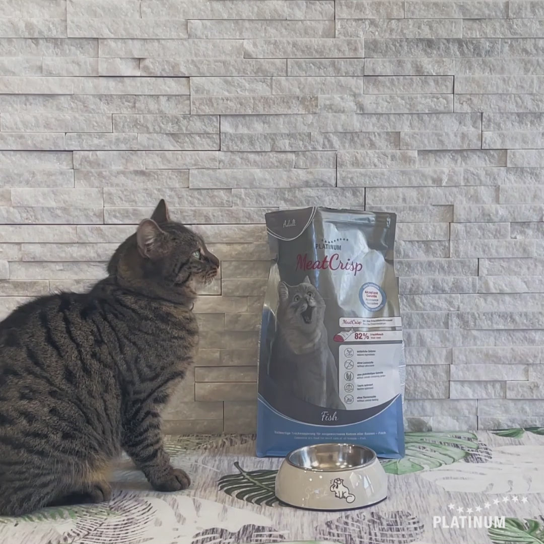 Naravna suha hrana za mačke PLATINUM MeatCrisp Adult Fish - Riba za odrasle mačke je pripravljena po postopku Freshmeatdryer - prvi postopek, po katerem se pripravlja popolna suha hrana za mačke iz svežega mesa.