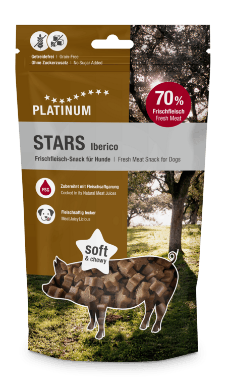 Iščeš mehke, izjemno okusne priboljške, ki jih tvoj pes obožuje? Iberico Stars so prigrizki narejeni iz svežega mesa iberske svinje in so prva izbira za vsakodnevno nagrajevanje ali šolanje. Sočno, mehko in dobro prebavljivo – zato primerno tudi za bolj občutljive pse.