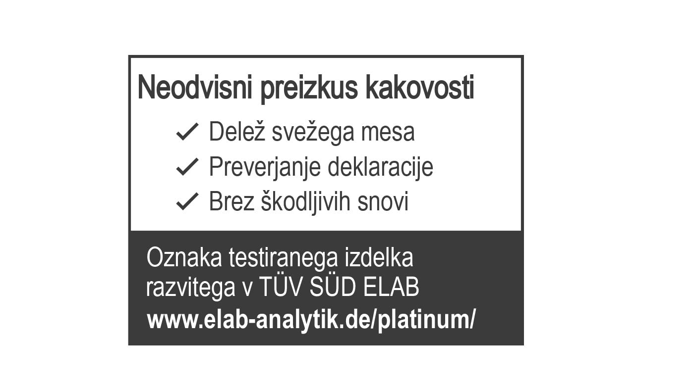 V svetu, kjer je prisotnih polno reklamnih obljub, le stežka ločimo dobro od slabega. Zato smo TÜV SÜD ELAB (sedaj ELAB Analytik GmbH) pooblastili, da našo hrano za pse redno in neodvisno preverja.